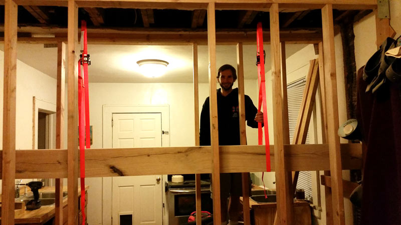 This project taught me lots of great skills for working with this old house. The process of taking down a load bearing wall, working with large rough cut beams, rigging pulleys, etc. I took various pictures and videos through this process that I’ve added below. I’ll try to list out descriptions for each piece of the process in a step by step tutorial but I do have a few gaps in the photo process.