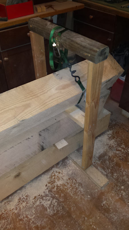 Halfway through the video you can see the frame that I built around the beams in order to lift and rotate each piece of wood. This worked really well and I only had to lift the beams about 2 inches in order to rotate them.
