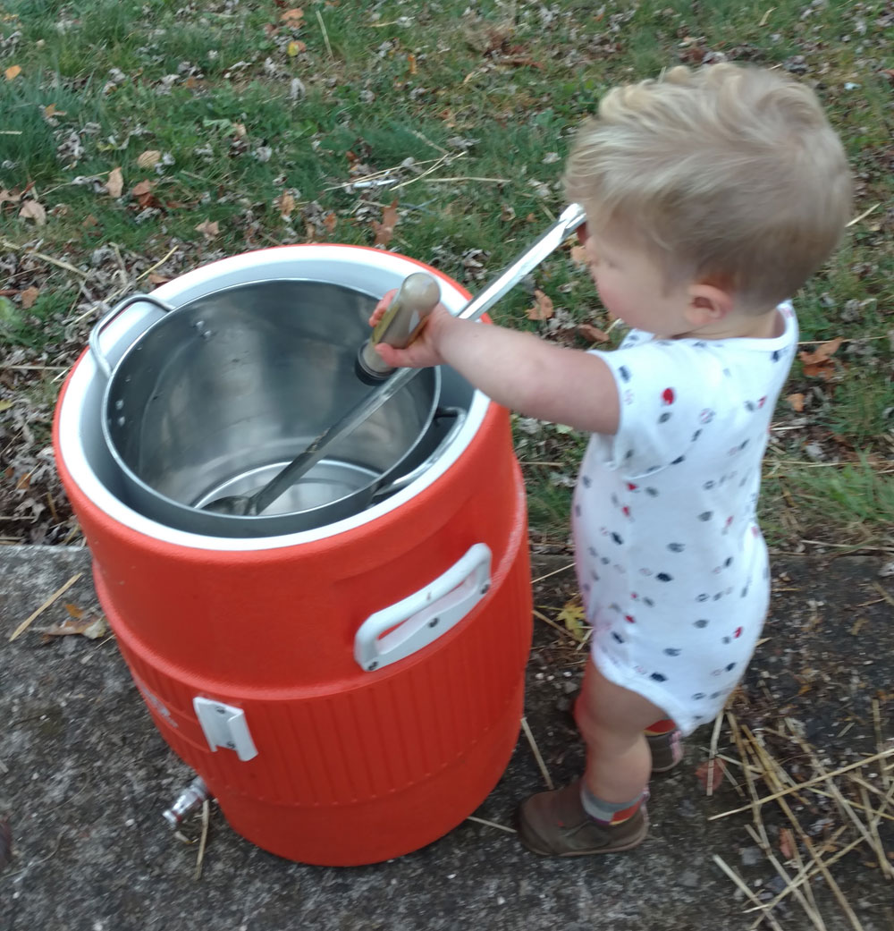 We thought it might be fun to pose my friends kid in a series of brewery photos. It turns out the kid can brew some seriously tasty beer. This batch was actually our first Gruit (beer without hops).