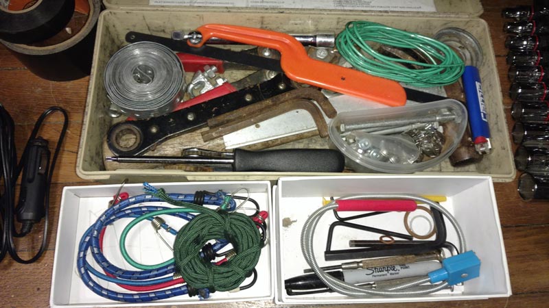 My bike did not have a tool kit when I purchased it. I assembled a pile of tools that covered a number of repairs that I might need to make on the bike. This list contains: